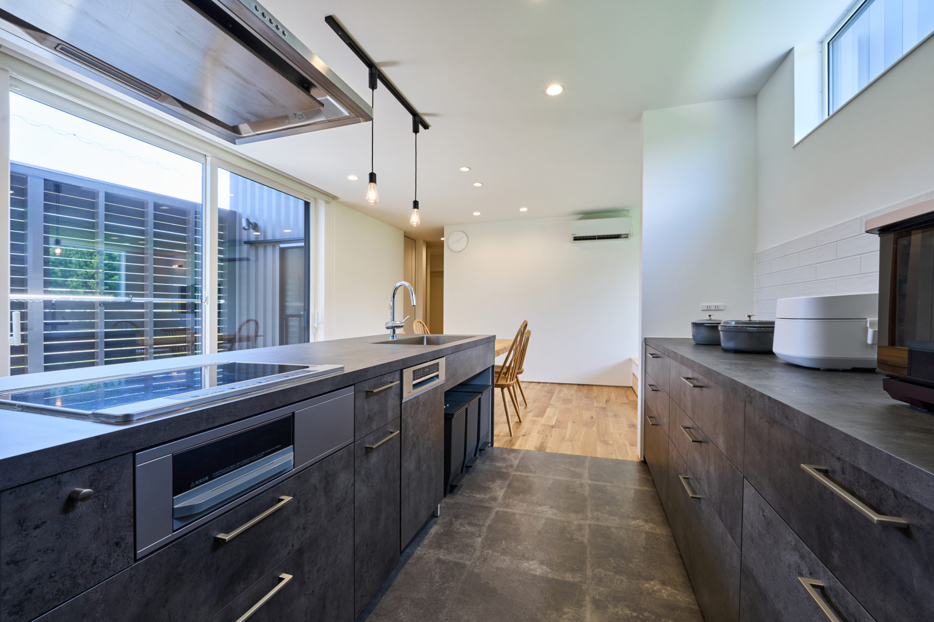 土地の形状に合わせたのびやかな空間は、扉をほとんど用いずゆるく区切られており、開放感と動線のよさも魅力です。